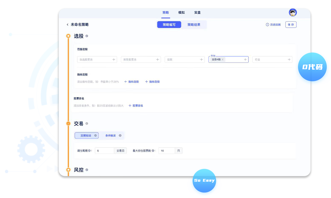 針對(duì)“入門(mén)投資者”客群,因其缺少選股投資技能或僅具備投資選股操作基礎(chǔ),在面對(duì)超過(guò)4000只股票及相關(guān)標(biāo)的, 以及海量、龐雜的市場(chǎng)數(shù)據(jù)和資訊時(shí),對(duì)標(biāo)的篩選仍難以入手的痛點(diǎn),輕量化策略工具基于客觀財(cái)務(wù)和行情數(shù)據(jù)、具備快速回測(cè)歷史數(shù)據(jù)、操作簡(jiǎn)單的策略選股,滿足該用戶群體的需求。