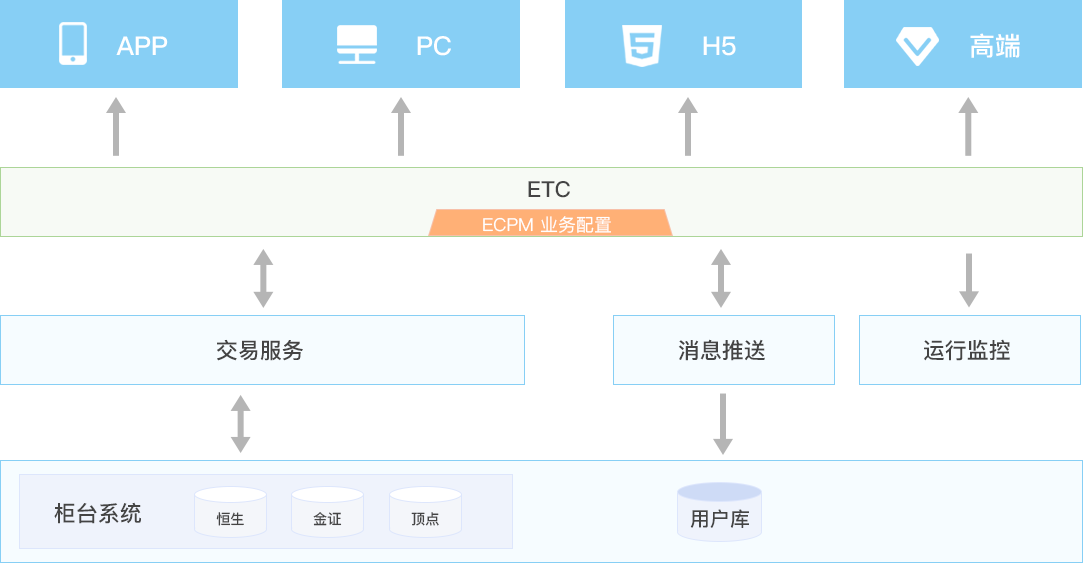EXD交易中臺支持金證、恒生、頂點柜臺,業(yè)務(wù)覆蓋市場主流交易品種。平臺架構(gòu)層次分明,支持多個運營商線路,交易信息實現(xiàn)數(shù)據(jù)對端加密傳輸與控制,系統(tǒng)安全穩(wěn)定,支持千萬級用戶訪問。